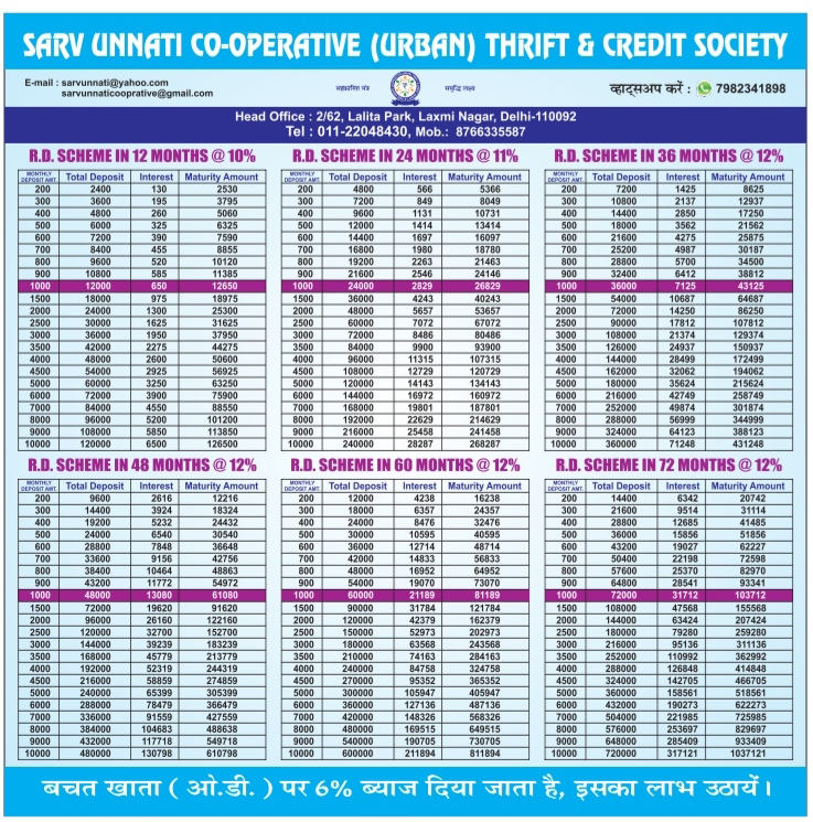 R.D. SCHEME IN 72 MONTHS @ 12%
